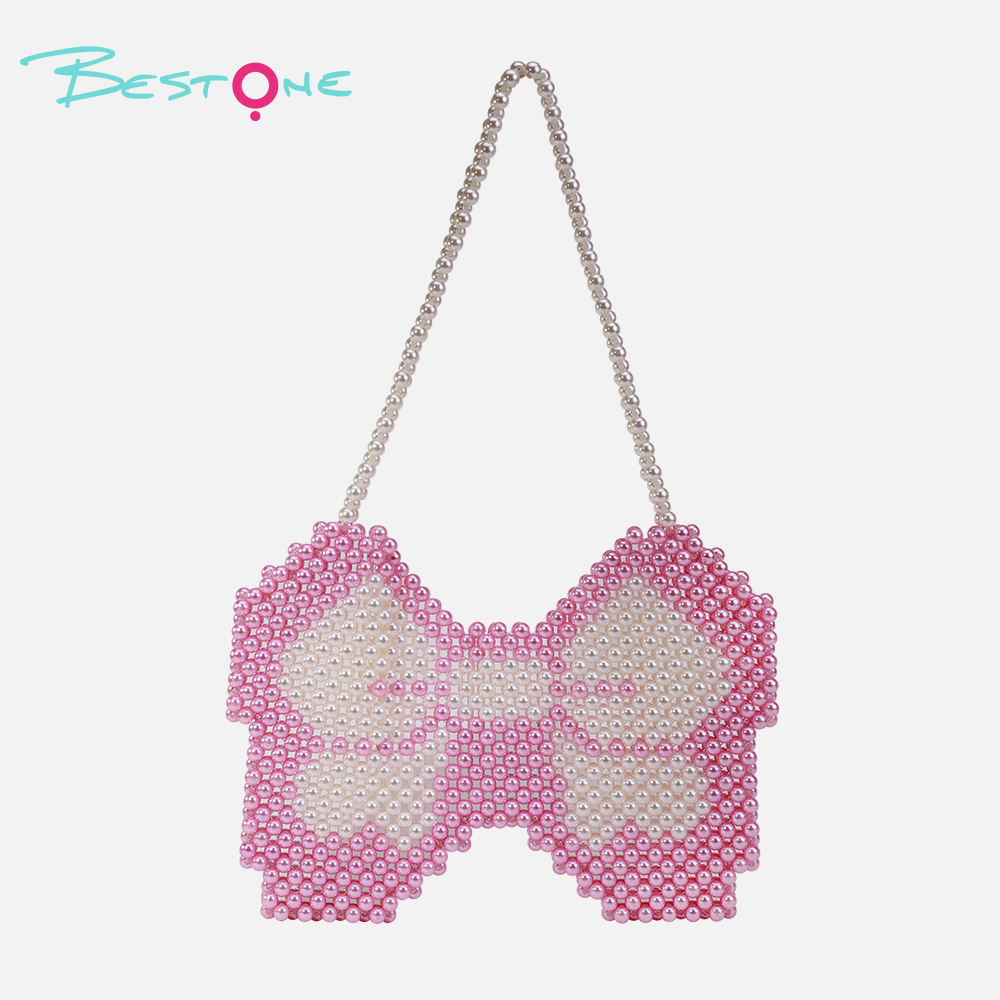 | Product Name | Pink & White Acrylic Beaded Bowknot Handbag |