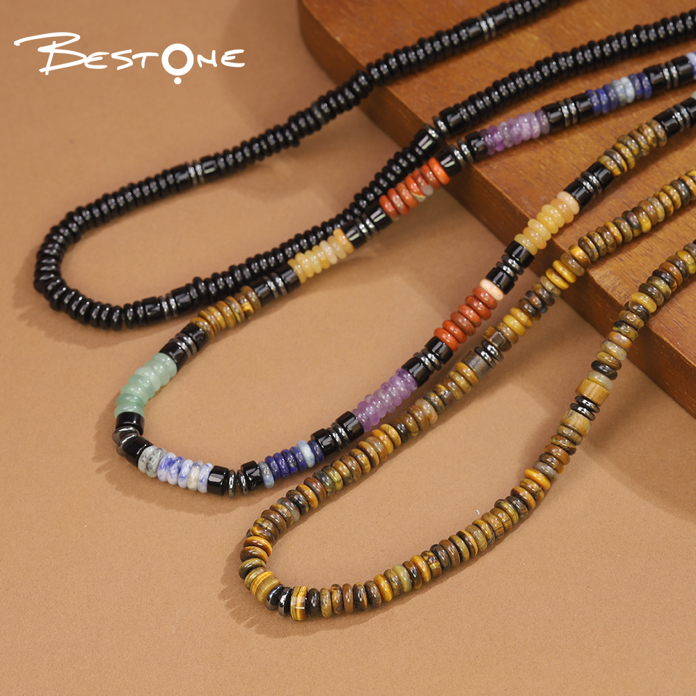 Discover this 50cm natural gemstone necklace collection featuring Obsidian, Yellow Tiger Eye, and vibrant Seven Chakra energy stones. Crafted with 6mm cylinder beads and antique silver spacers, each necklace combines elegance with positive energy. Perfect for boutique stores, wholesale buyers, and corporate gifting seeking healing crystal and energy stone jewelry.